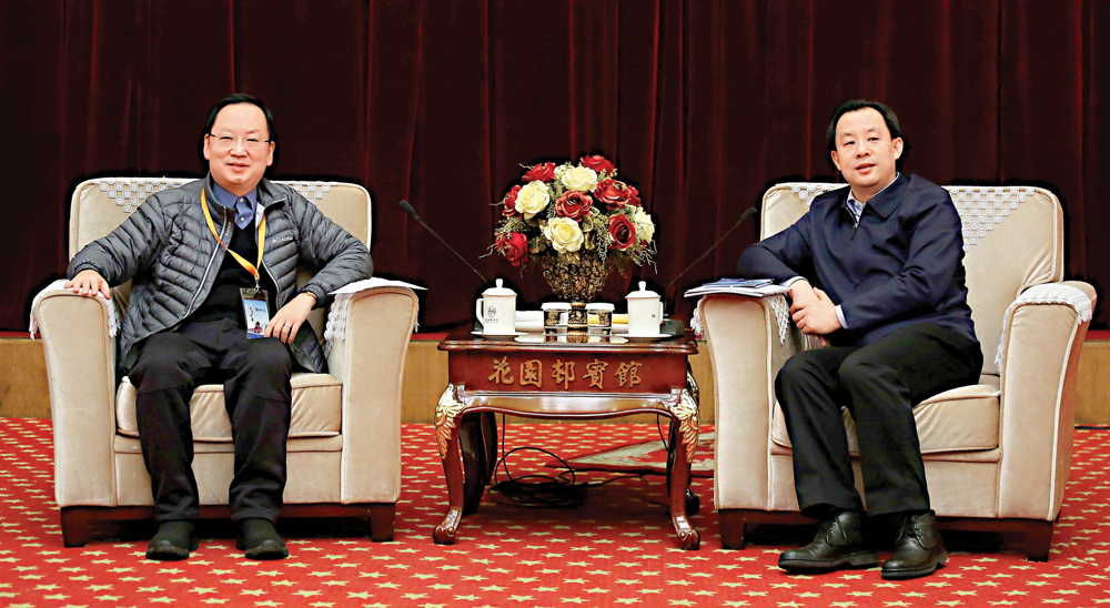 “香港青年学生京哈冰雪体验专列团”主要嘉宾昨日于黑龙江花园h宾馆获黑龙江省省长陆昊亲切会见。陆昊鼓励香港青少年除了感受哈尔滨的独特冰雪风景外,更要领略祖国的美好江山,体会祖国迅速发展,了解国情。/大公报记者 叶汉亮哈尔滨报道