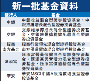 不足一个月,证监会已公布三批南下基金,而且获批数目一次比一次多。首批为4隻,次批为9隻,今次则增至10隻。而是次获批的六间发行商,与上两次获批的发行商不同。当中汇添富基金管理共有三隻基金获批,是六间发行商中获批最多的发行商,三隻基金包括汇添富医药保健混合型证券投资基金、汇添富民营活力混合型证券投资基金及汇添富价值精选混合型证券投资基金。另外,中银及交银施罗德都有两隻基金获批,招商基金、南方基金及华安基金都各有一隻。