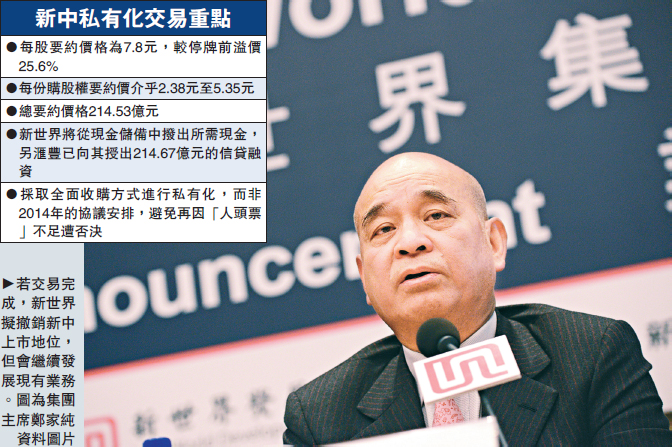 图:若交易完成,新世界拟撤销新中上市地位,但会继续发展现有业务。图为集团主席郑家纯/资料图片