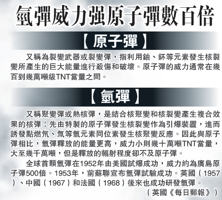氢弹威力强原子弹数百倍