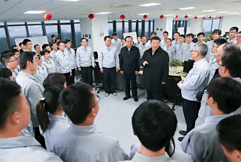 图:4日下午,习近平视察重庆京东方光电科技有限公司研发中心,勉励年轻人创新突破/新华社