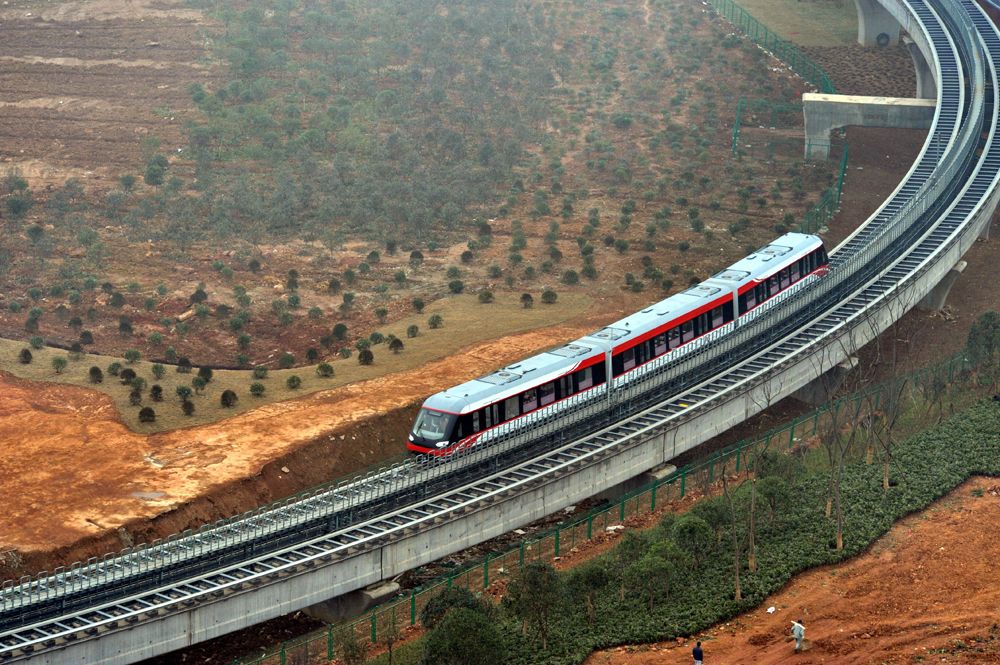 6日,已经开始试运行的长沙磁浮快线持续进行系统调试,计划2016年上半年载客试运营。这条磁浮快线连接长沙火车南站和黄花机场,全长18.55公里,全程高架敷设,于2014年5月开工建设。/新华社