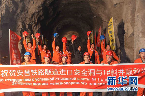 图:乌兹别克斯坦安革连至安琶铁路隧道安全洞贯通/新华网
