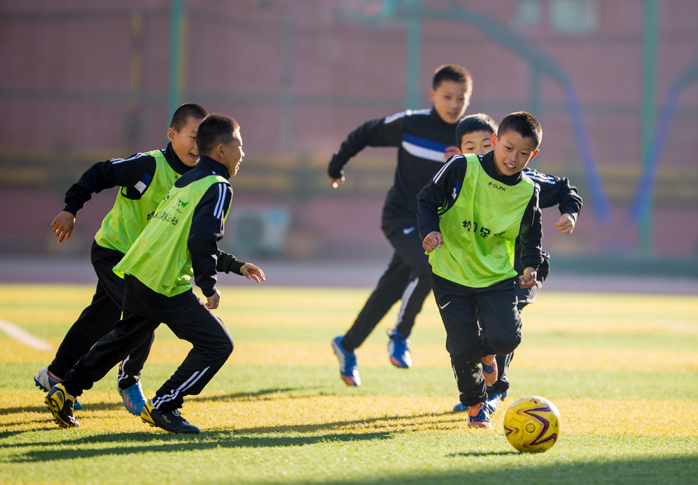 图:内蒙古一小学足球俱乐部的学生在训练 资料图片