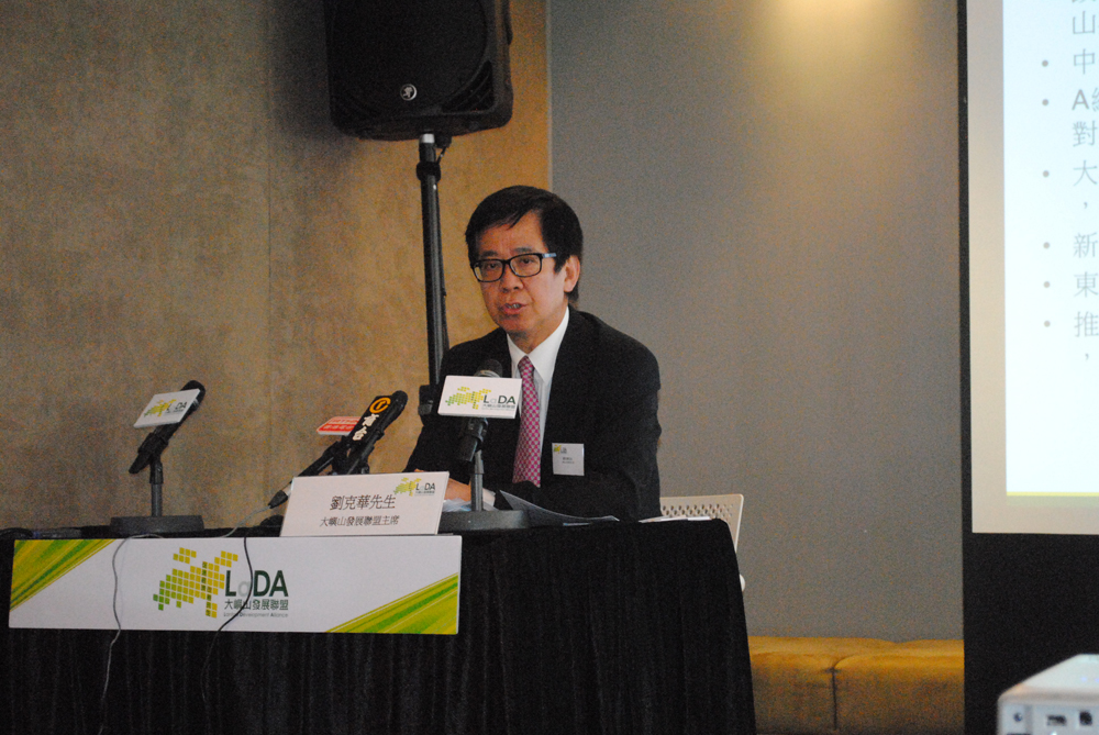图:大屿山发展联盟主席刘克华建议,改善交通设施,吸引更多大屿山居民原区工作 大公报记者何进昇摄