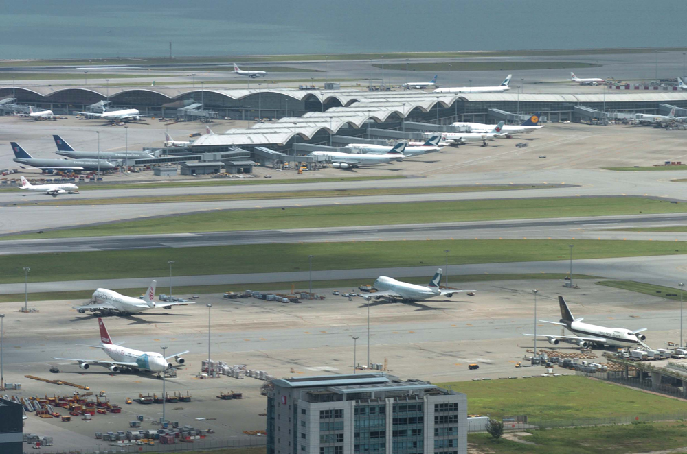 图:现时香港国际机场的双跑道系统已临近饱和 资料图片