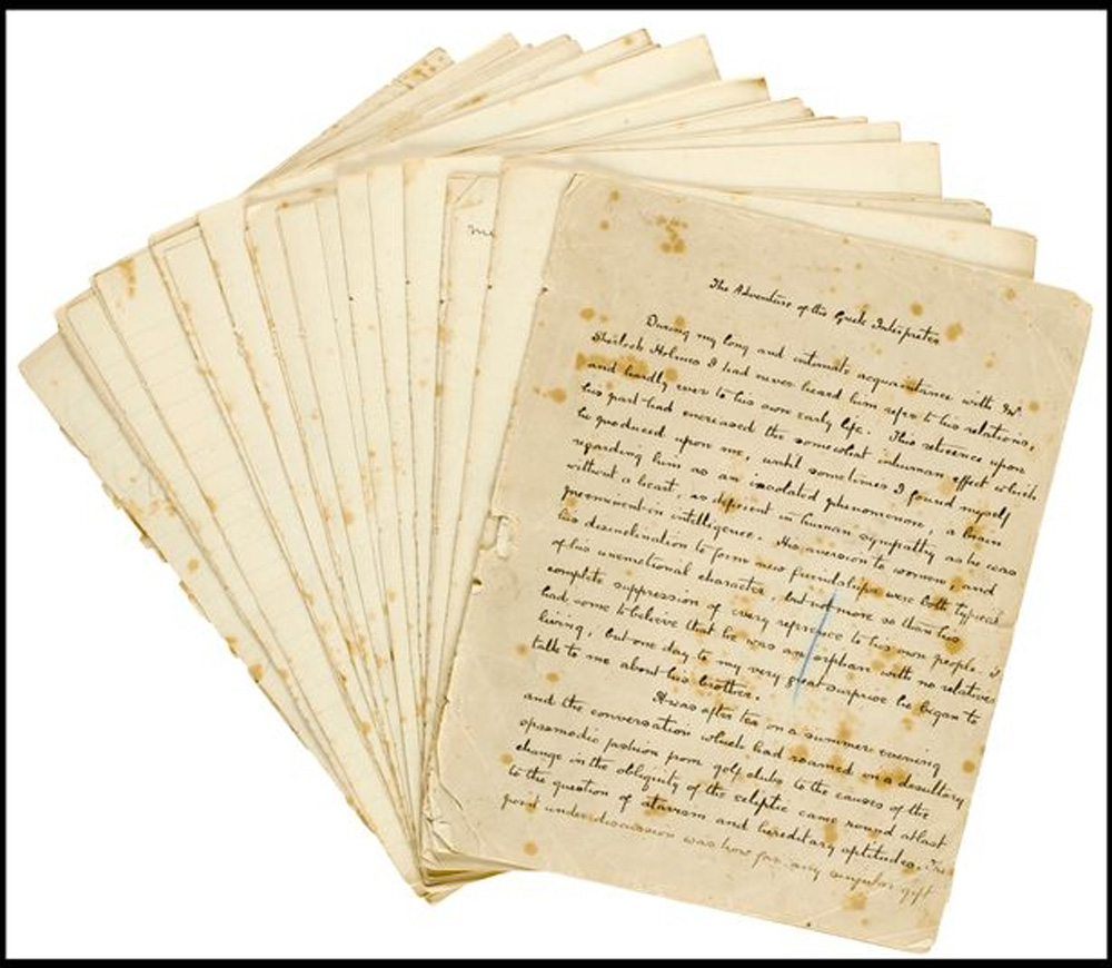 图:英国作家柯南.道尔的“福尔摩斯”系列小说手稿 网上图片