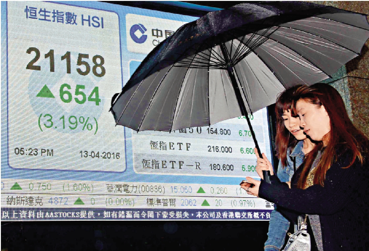 图:港股突破闷局,昨日大升654点,成为亚太区升幅最大市场,全日上升股份1273隻,全日成交额936亿元 中新社