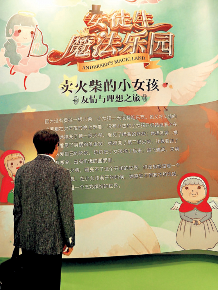 图:曹文轩在《卖火柴的小女孩》海报前驻足