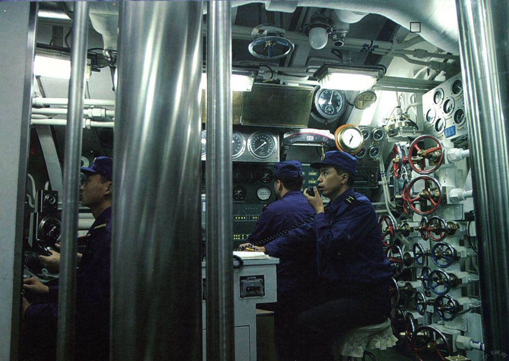 图:中国潜艇官员在操控潜艇行进 资料图片