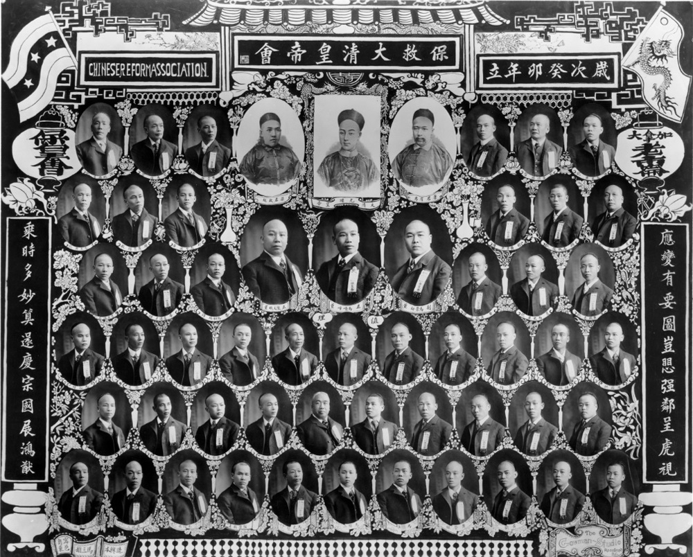 图:加拿大保皇会的宣传海报,上方正中印有光绪皇帝及康有为(右)、梁启超(左)的肖像