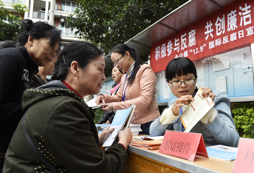 图:在福建省福州市仓山区仓山镇先锋村,纪检监察干部(右)向居民介绍信访举报联繫卡使用方法\资料图片