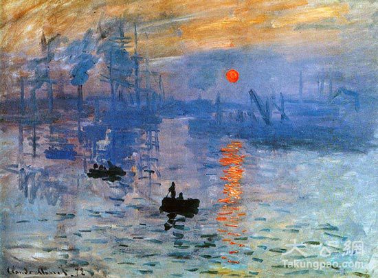 让法国、让欧洲、让世界认识克劳德·莫奈的是那张画布油画“日出·印象”,从此,世界美术界开始有了一个新的艺术流派:印象派。