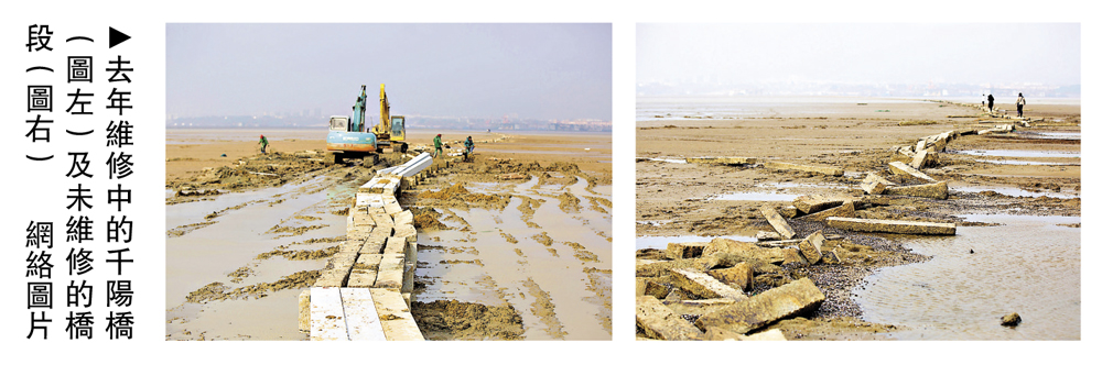 由于“千眼桥”在一年中,至少有半年时间浸泡在水里,加上泥沙风浪冲击,桥身损坏严重。为此,当地专门拨款90万元人民币对桥墩、桥面进行维修加固。维修坚持“修旧如旧”的原则,仍採用花岗岩等材料,展现古桥的歷史面貌。 (记者 王逍)