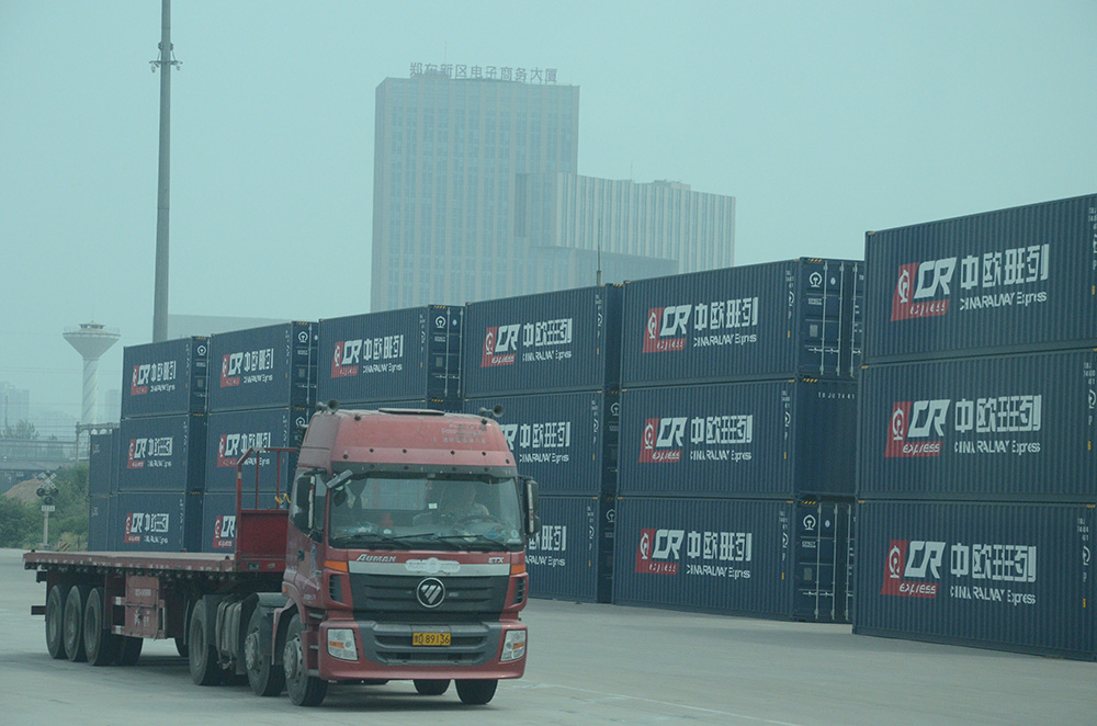 图:郑州铁路集装箱中心站排满了中欧班列的货柜\实习记者郭芷萱摄
