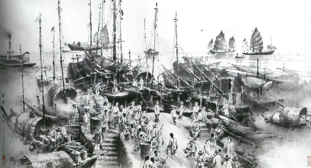 陈家义展出两幅新作,其中巨幅水墨作品《百年香江》描绘一百年前的香港码头。另外一幅为水彩作品《“辽宁”号》,他说道:“这幅作品创作于今年七月‘辽宁’号抵港之时,看到国家如此强盛,有感而发。”此外,许昭奇油画《青海牛心山下》,以及梁砚奴、侯绍政等画家的艺术作品亦于展览中展出。