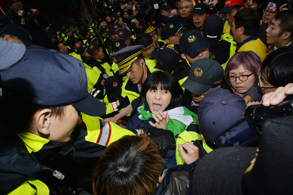 图:劳工团体二十三日到“立法院”前抗议,与警方发生冲突\中央社
