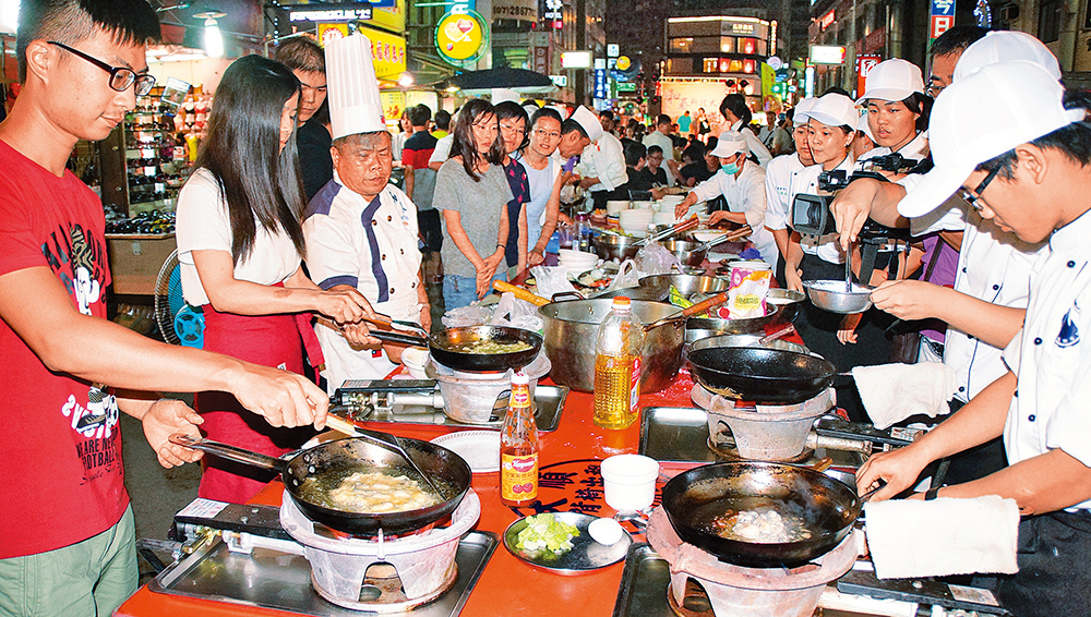 图:2011年两岸开放大陆学生入岛深造,有助于两岸青年人加强沟通和彼此了解。图为2014年两岸学生在高雄六合夜市举办谢师宴\资料图片