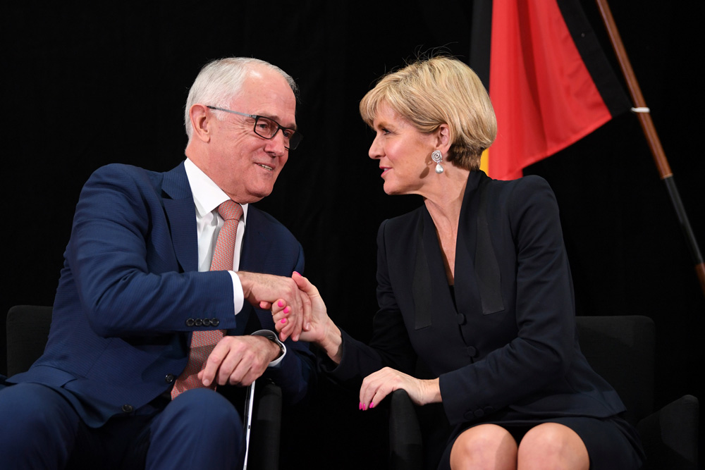 图:澳洲总理特恩布尔(左)与澳洲外长毕晓普出席外交政策白皮书发布会\路透社