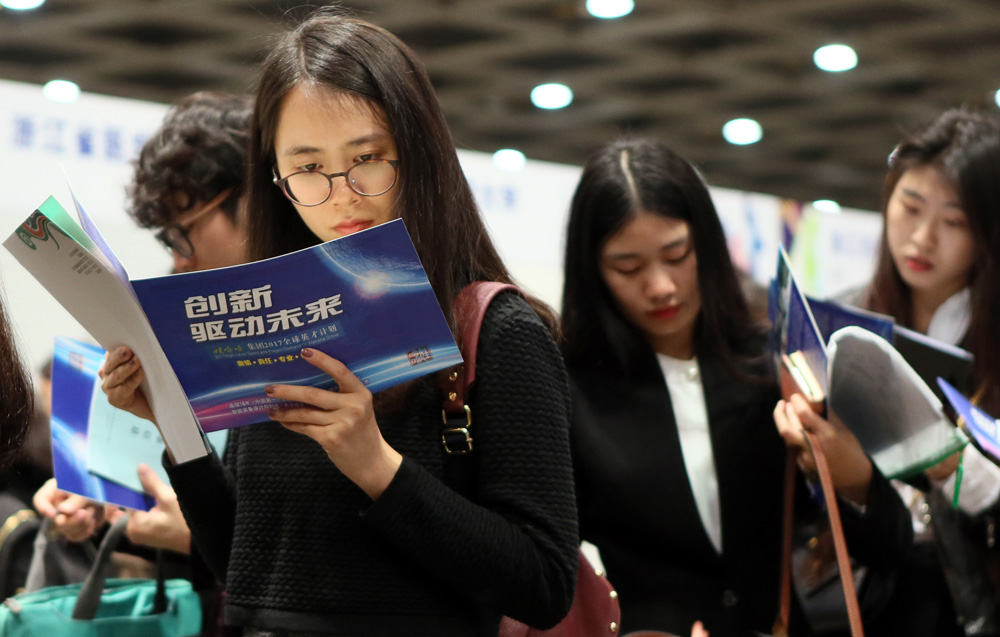 图:今年3月,求职者在“2017浙江─香港现代服务业高端人才招聘会”上应聘\资料图片