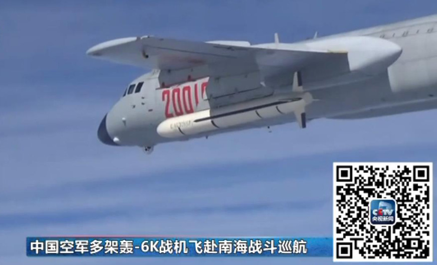 图:近日,空军多架轰-6K等战机飞赴南海战斗巡航\视频截图
