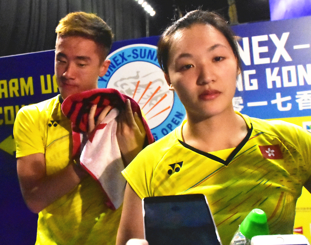 【大公报讯】记者张锐报道:另一场焦点赛事,作为中国香港队在港羽赛的“遗珠”,混双组合邓俊文/谢影雪承载着港人的支持出战八强赛,虽然奋身力战,但仍以0:2不敌中国组合王懿律/黄东萍,无缘四强。
