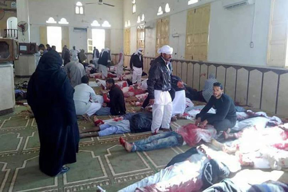 埃及国会议员巴克立在推特上写到:“这是灾难性的局面。当时有带着面具的恐怖分子包围了清真寺,还有穿着自杀式炸弹背心的恐怖分子藏匿在做礼拜的信徒当中。”他还补充指,袭击者使用的是机关枪。他发誓,埃及将会抗争恐怖主义,并谴责袭击者指,“这些人不是穆斯林,他们是杀手。”