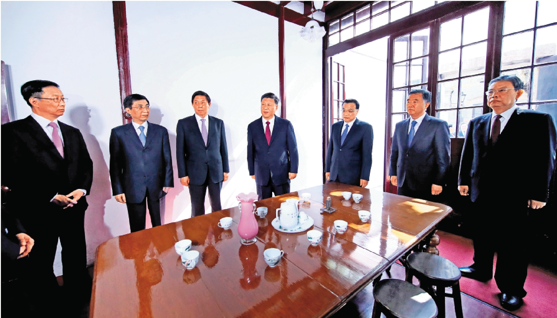 图:10月31日,中共中央总书记、国家主席、中央军委主席习近平带领中共中央政治局常委李克强、栗战书、汪洋、王沪宁、赵乐际、韩正,瞻仰上海中共一大会议室 资料图片