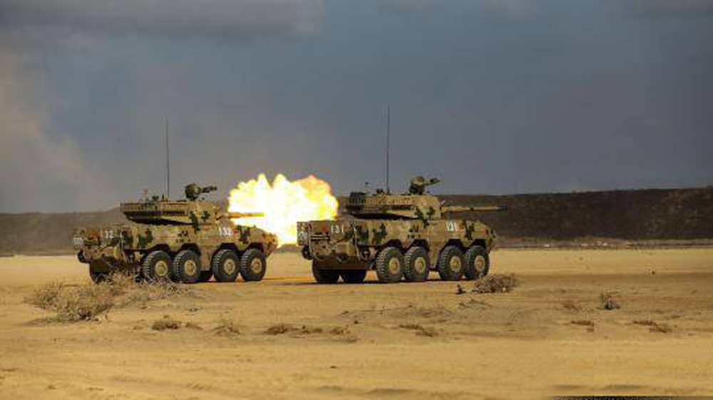 图:轮式装甲突击车实射穿甲弹 中新网