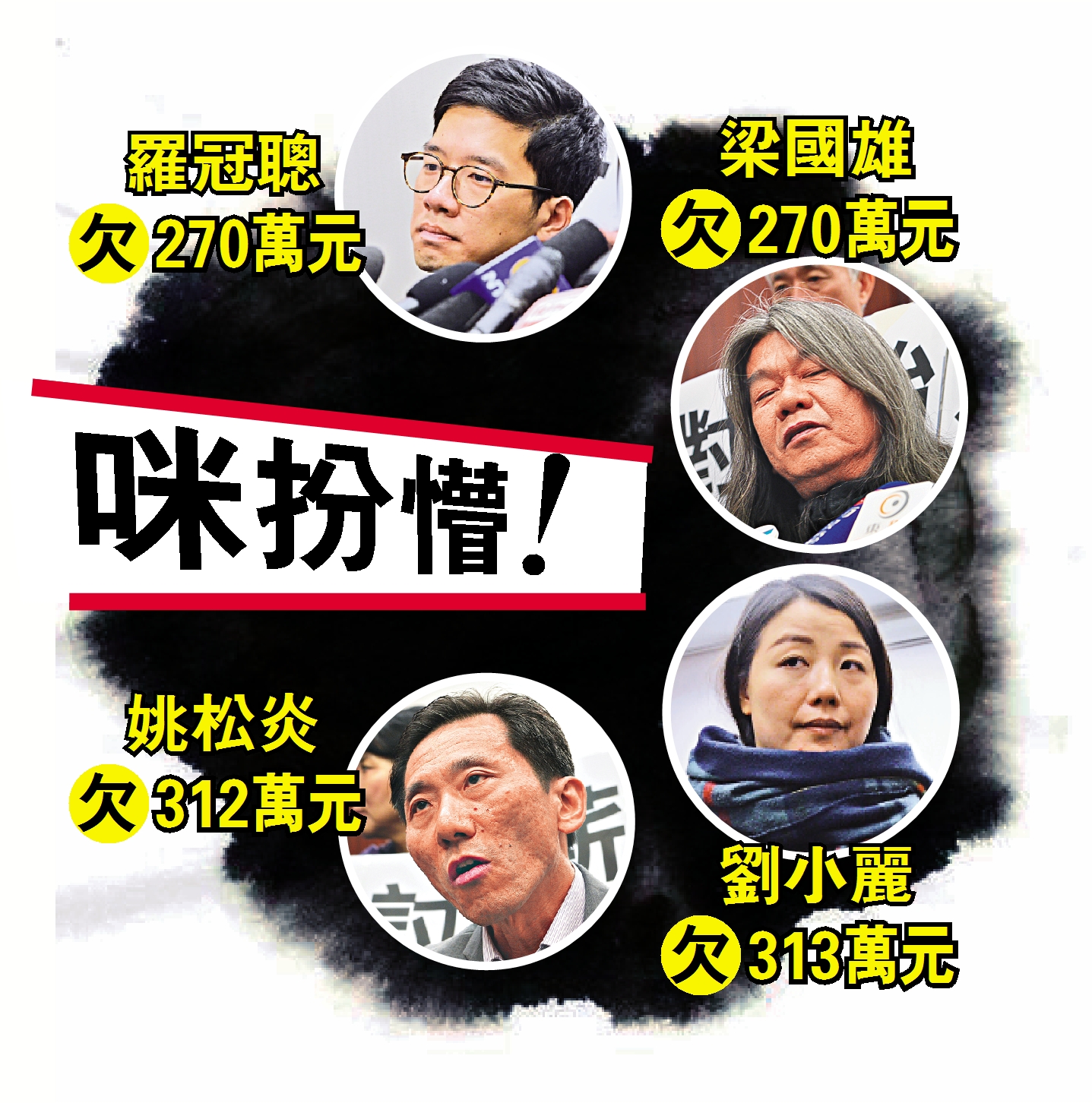 高等法院今年七月十四日裁定,罗冠聪、梁国雄、刘小丽及姚松炎去年十月十二日的议员宣誓无效,四人的议员资格由当日起撤销。立法会行管会昨日上午召开特别会议,梁君彦会后表示,行管会考虑法律意见后,决定向四人追讨由去年十月十二日起发放的全数议员薪金及办事处营运开支津贴。四人需交还的款额介乎270万元至313万元。其中向刘小丽追讨的款额最多,约313万元,姚松炎约312万,梁国雄和罗冠聪就被要求退还270多万元,总额约1174万元。行管会向四人发出“要求退还款项通知”,要求四星期内回覆,行管会收到回覆后会考虑下一步行动。