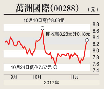 万洲国际(00288)首九个月生物公允价值调整后纯利为7.32亿元(美元,下同),按年升7.8%。期内,营业额162.85亿,按年升3.23%。主要受惠于猪肉成本下降及产品升级。公司预计明年国内生猪价格将会下跌,故加快屠宰业务发展,同时加快结构调整,料明年屠宰及肉製品业务分别录双位数及高单位数增长。