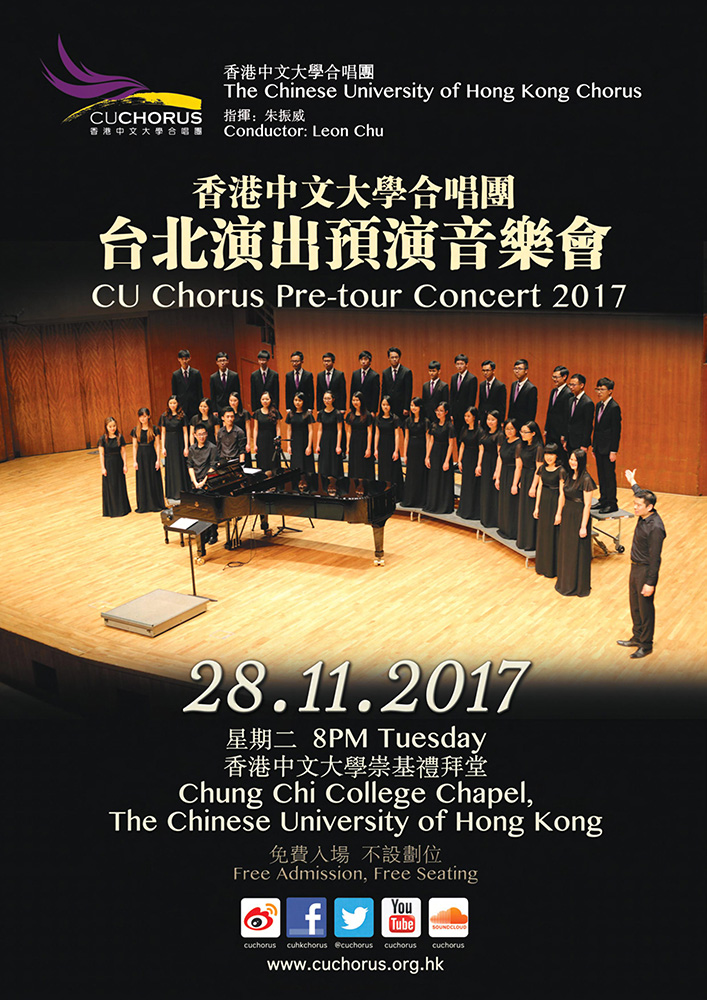 更多节目详情可浏览网站www.cuchorus.org.hk,或登入Facebook“香港中文大学合唱团”。