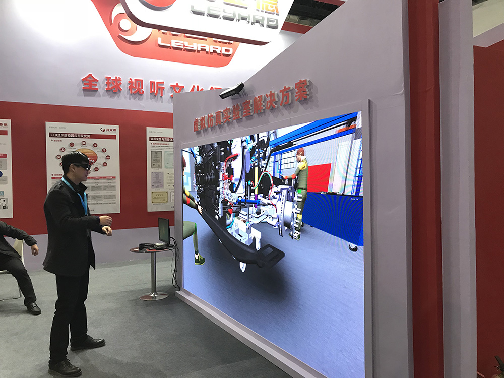 峰会暨国际智慧教育展览会”在北京开幕。现场,参观者可在86吋的智慧黑板上书写或运用视频设备教学,也可佩戴专用眼镜感受模拟仿真实验室解决方案等。 江鑫娴摄