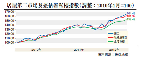 在报章内看到很多对白居二的统计方式,其实笔者都认为不太准确的,计算居屋第二市场的楼价升幅,是应该由购买力第一个月进入市场(即已经完成批核合格手续能真正在市场上运作及成交)来计算,因为只是宣布了而根本没有有关资金进入市场,其实只是一个假设,在多变而且楼价急速升幅的市况下,这种计算是不准确及不科学的。就以公布白居二计划前的2010年1月相比2012年8月,全港私楼楼价升了52%,私楼细单位是升了61%,居屋第二市场是升了64%,显示居二的本质已经是比全港私楼包括细单位升幅更大更急,将未进入市场的楼价升幅都入了白居二数,又是另一个数据的错误演绎。