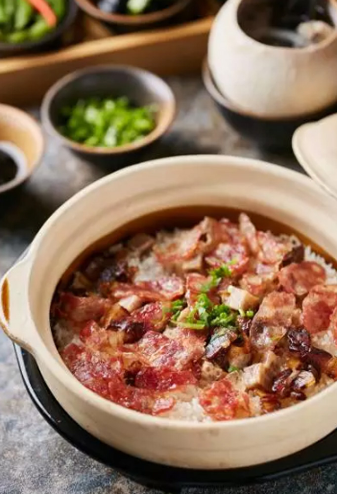 煲仔饭是香港味道中,最接地气也最常见的。它与明火粥、炒河粉、云吞麵一起,组成了香港饮食中最朴素的粥粉麵饭。它们中的大部分,身价都不过是三、四十元,却是港人日日工馀百吃不厌的主食。而煲仔饭中最经典的莫过于腊味饭。腊肠、腊肉、鸭润肠(鸭肝和猪肉混合製成)、腊鸭,这四样经久不衰。这些肥甘的食材在瓦煲里经高温一逼,奉献出自身的油脂,润泽下层米饭,直渗入煲底。米饭又齐聚力量将它们托住,入口时韵味依存。