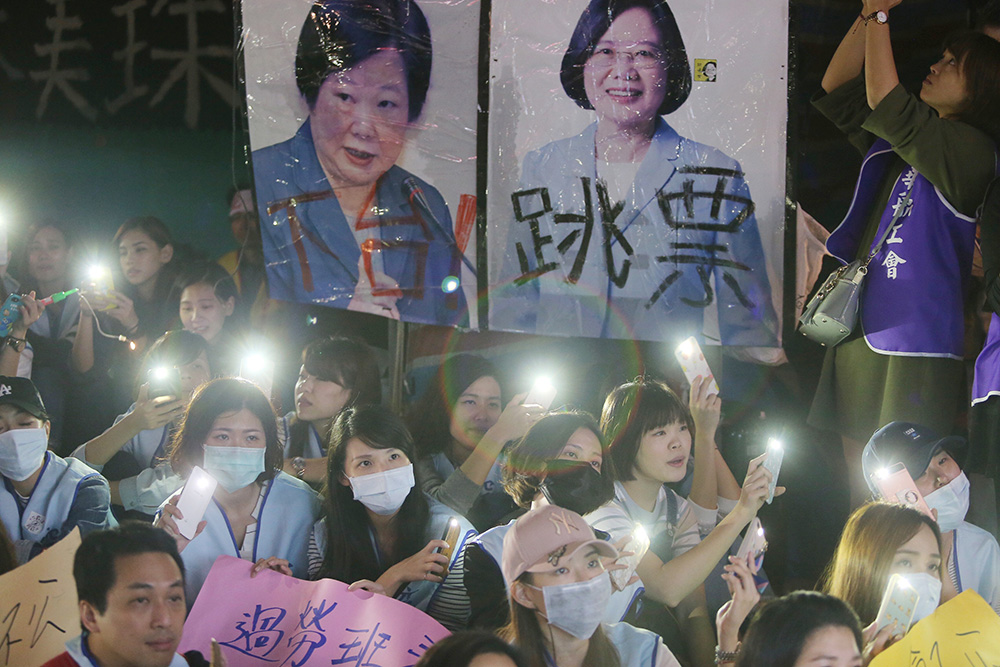 图:湾多个航空业工会28日晚抗议当局修改劳基法 中央社