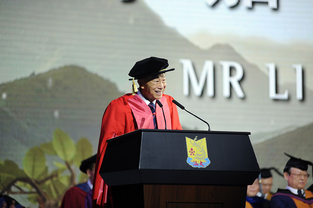 图:6月27日,李嘉诚在汕头大学2017年毕业典礼上致辞 新华社