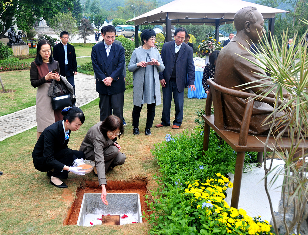 【大公报讯】记者史兵福州报道:28日上午,著名围棋大师吴清源的爱女吴佳澄手捧父亲的灵盒,在吴清源大弟子林海峰等人的护送下,正式归葬于风景秀丽的福州三山人文纪念园内。