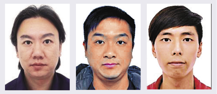 图:3名被通缉的香港毒枭,由右至左:周志桦、马国文、何家荣 警方供图
