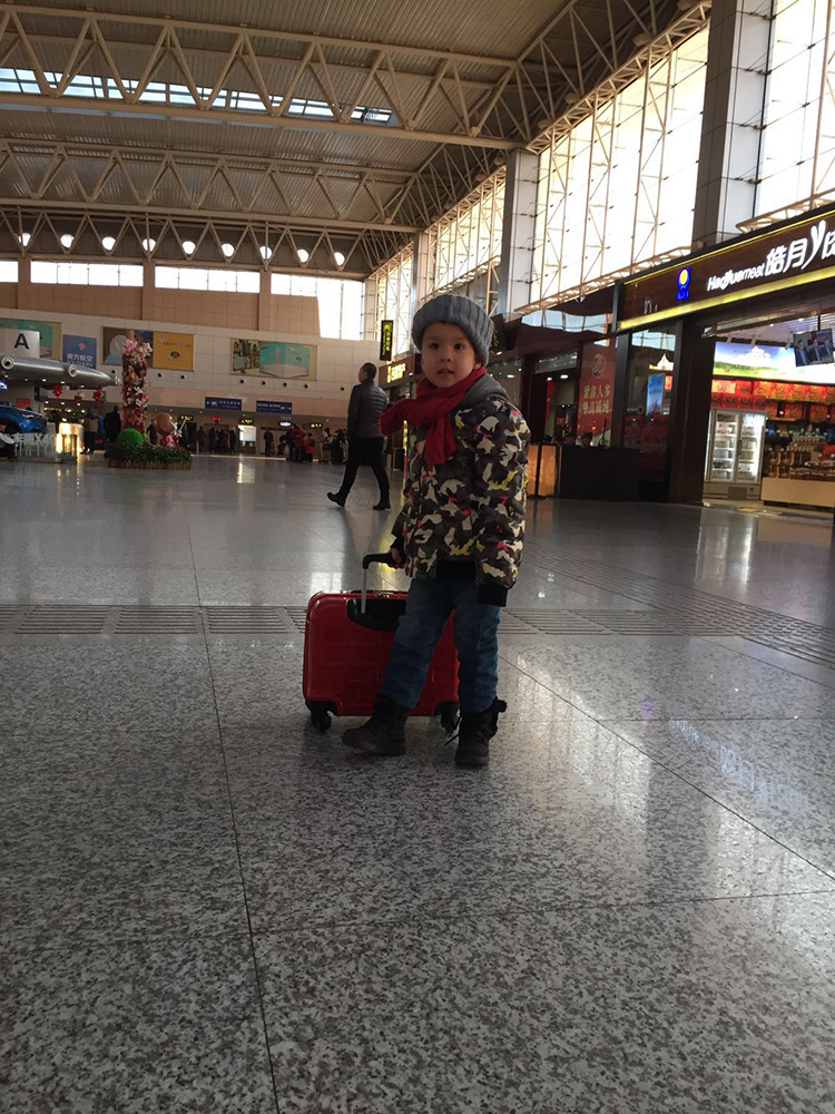 图:Mark为儿子留下春运机场纪念照 受访者供图