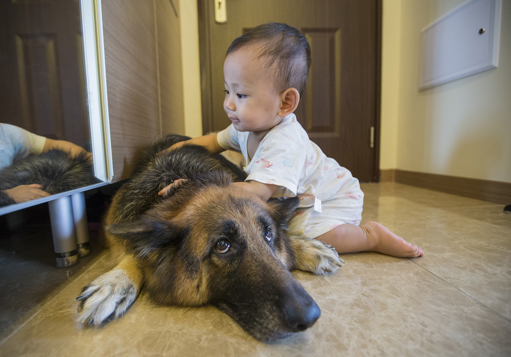 “狗狗”是桃桃继爸爸妈妈以后学会的第三个叠声词。赖先生说,“2016年儿子出生,当时全家人的精力都在照顾宝宝,小虎更多的是远远的看着,随着桃桃一天天长大,他们之间的感情也就日渐升温,现在经常头顶头,那场景特别温暖。”在公园玩耍,小虎也总是寸步不离,一旦有生人靠近,它总是第一个冲出来挡在桃桃的身前。德国牧羊犬的寿命通常在13年左右,“待到桃桃懂事一点时,或许就要送走小虎了。”赖先生认为,狗狗的生命短暂,能带来很多欢乐与回忆,也能让孩子完整的感受到一个成长与生死的过程。