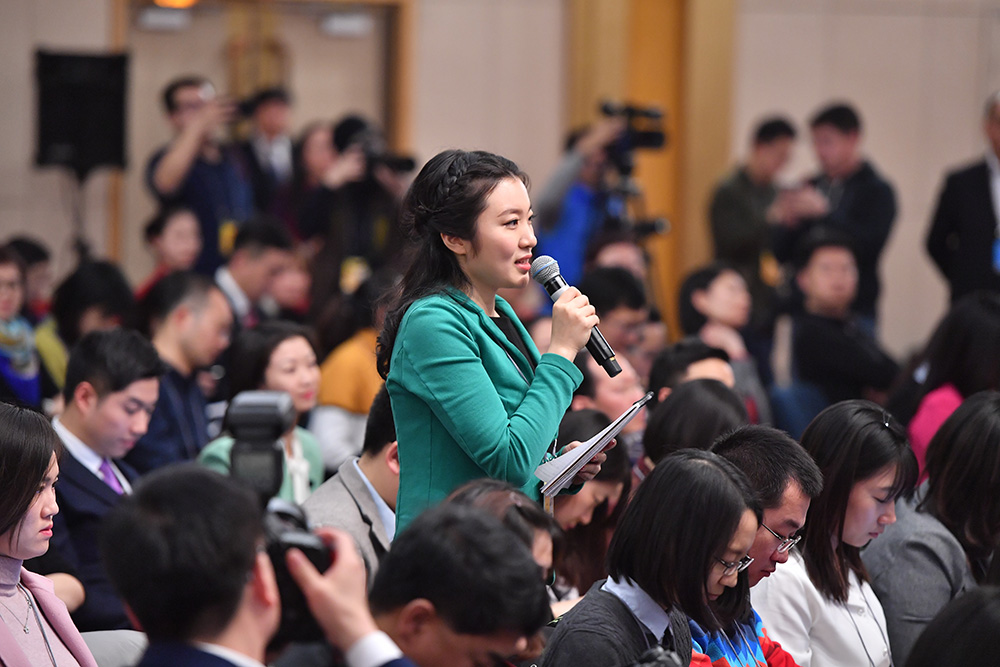 图:记者在提问“打好污染防治攻坚战”相关问题/新华社