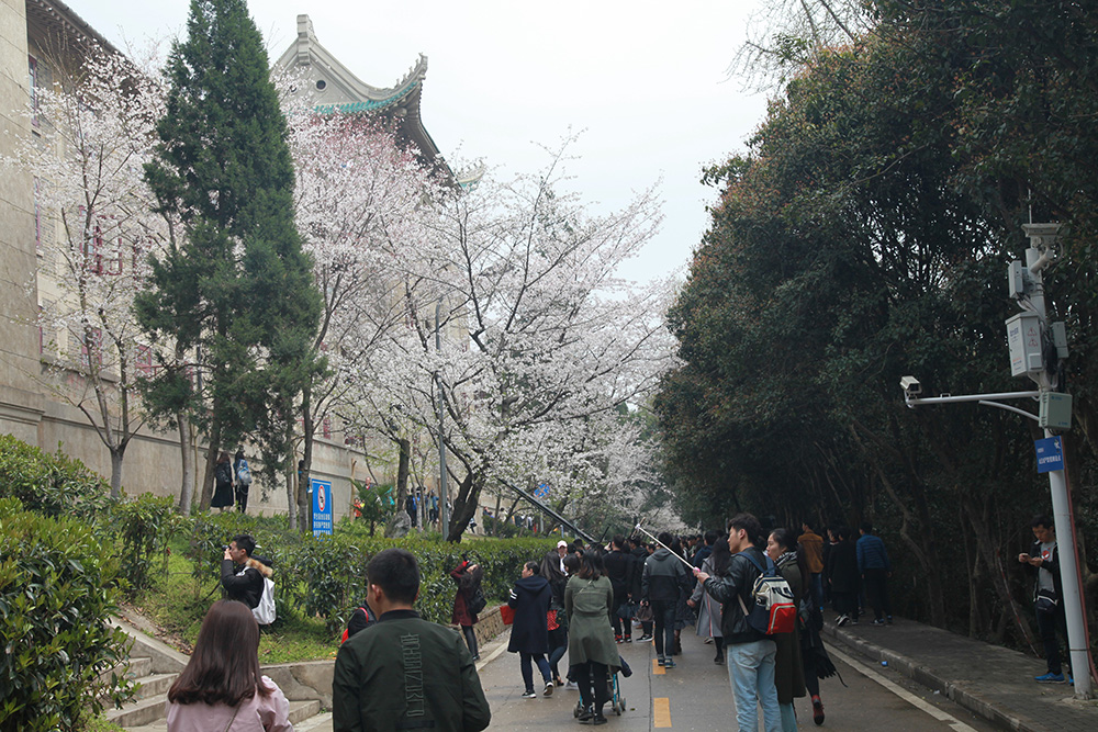 随着天气转暖,内地著名的大学胜景─武汉大学樱花季开启,武大将于3月20日至4月2日期间对校园局部区域实行封闭管理,公众可通过网上预约后持身份证“刷脸”进入武大校园赏樱。22日当天,武大赏樱核心区的樱花已盛放,游人三五成群前来观赏。