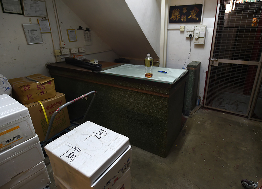 古时婚嫁要“竹门对竹门,木门对木门”,果栏亦有门户之见!石龙街1952年兴建的十六座栏档建筑物,外观相似,于2009年被古物谘询委员会列为二级歷史建筑,张志祥指着栏档的门口牌匾说,从用料可探知该栏商是否赚得盘满钵满,“用木造即系无乜钱,用石磨系有钱户。”当年门牌与店内的办公柜枱用料是全套製造。