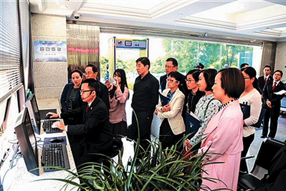 图:代表委员们观摩“知识产权纠纷类案智能专审平台”操作演示\资料图片