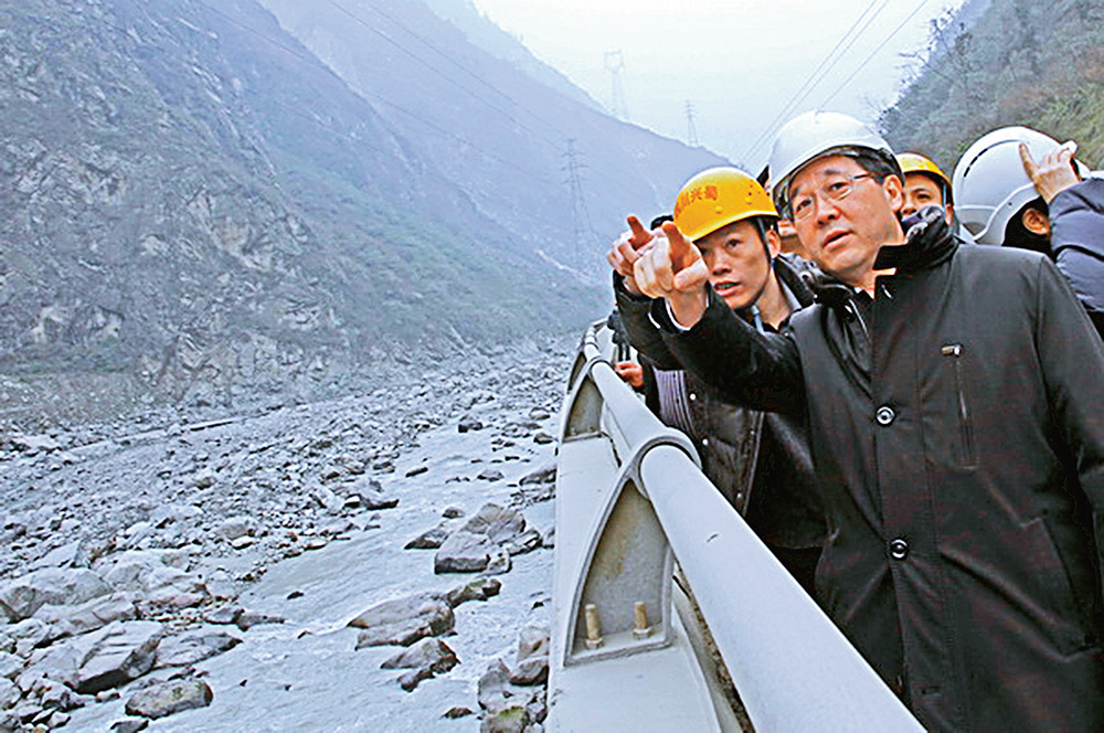 图:二○一二年,香港前政务司司长林瑞麟在四川视察位于映秀镇的省道三○三项目/网络图片