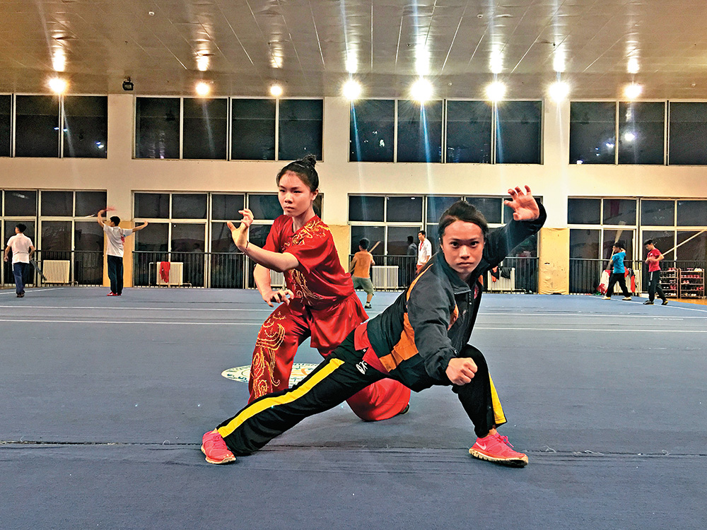 在香港援建的190个项目中,学校有60所,新建校舍74万平方米,约有18万灾区学生受益。其中,四川香港马会奥林匹克运动学校,是由香港赛马会出资1.35亿元援建。如今这里不仅成就了无数灾区学生的体验梦想,还成为了许多香港运动员集训备战赛事的训练场。下图为香港女子武术运动员袁家蓥(右)正在该校训练,备战8月印尼雅加达亚运。 (邓泳秋图/文)