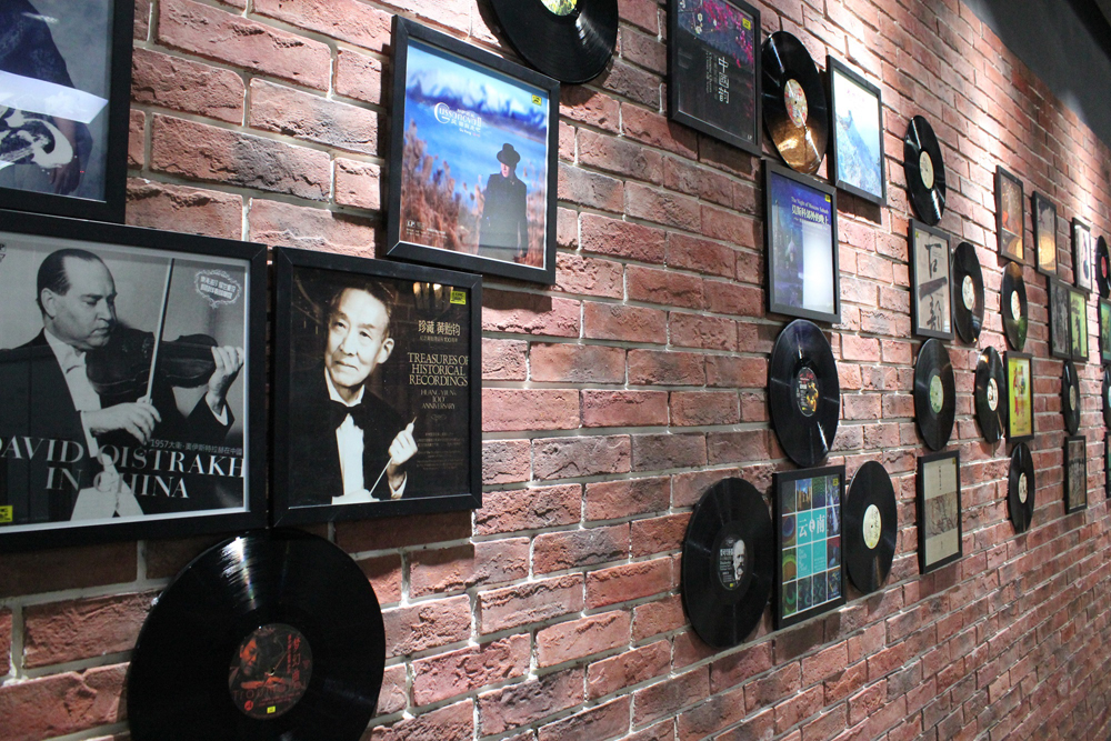 图:工坊内的“黑胶墙”记载着黑胶唱片的满满歷史/大公报记者倪梦璟摄