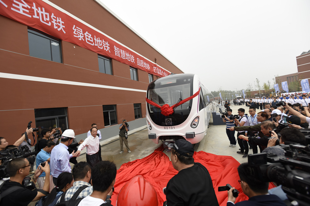 5月17日,济南市首列地铁车辆接车仪式在范村车辆基地举行。该车为中车青岛四方机车车辆股份有限公司为济南R1线研发定製,是内地防火水平最高地铁车辆。