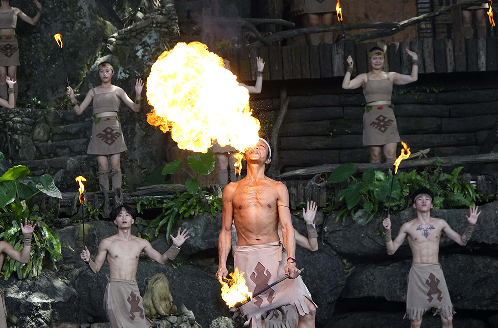 图:《槟榔.古韵》中火光熊熊的拜火舞最是紧张刺激\大公报记者彭子文摄